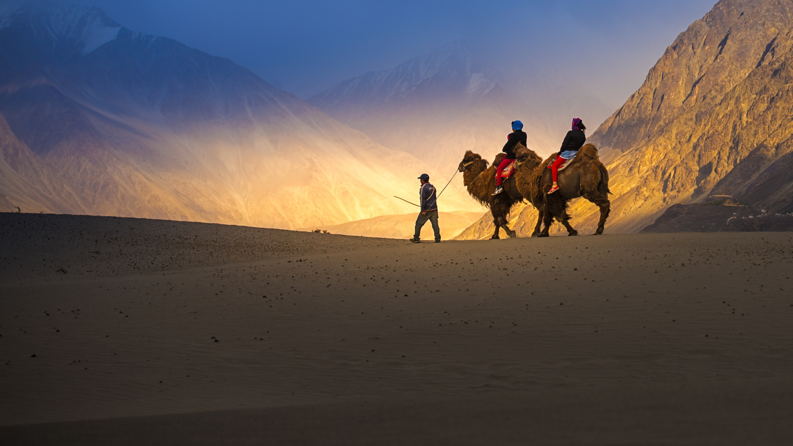 Go Ladakh for 6 day, very beautiful mountains! You see blue Pangong Lake and big Khardung La pass. We go Nubra Valley for ride camel on sand. See old monastery and meet local people. Very nice adventure for you and family. We make everything easy, no stress. Come feel Himalayan air with us, very special time!